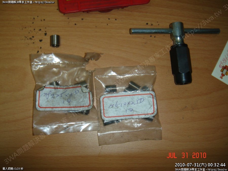 彈簧牙套、攻牙工具載具 牙套一般會分材質,盡量買不銹鋼的就是了 牙套會分尺吋,我們FZR常用通常為 M6、M8 然後長度通常M6會買2.5D,M8也是2.5D fzr的天柱推薦 2.5D 牙會多吃一些 所以二種各買一些吧,各買個10個吧,一個也才8~12元 至於要裝入牙孔,其實山人覺得買支相當細長又堅固的尖嘴鉗就行了 再配合2行程機油,或WD潤滑油,就很好裝入~ 裝入後再用細長的一字,把頂桿打掉,再用磁鐵吸出,或尖嘴鉗夾出、拉斷也行 【第6張】 |