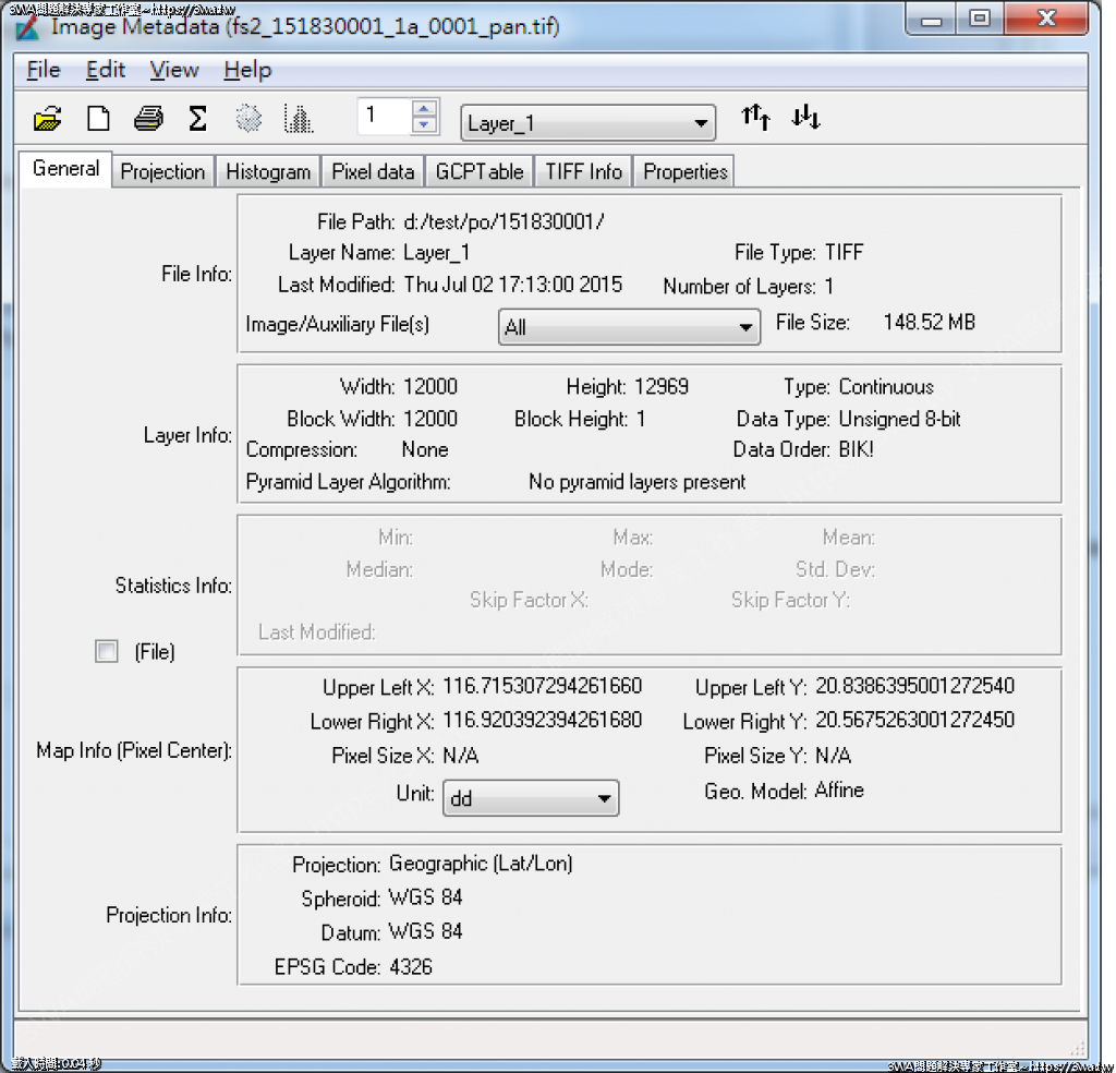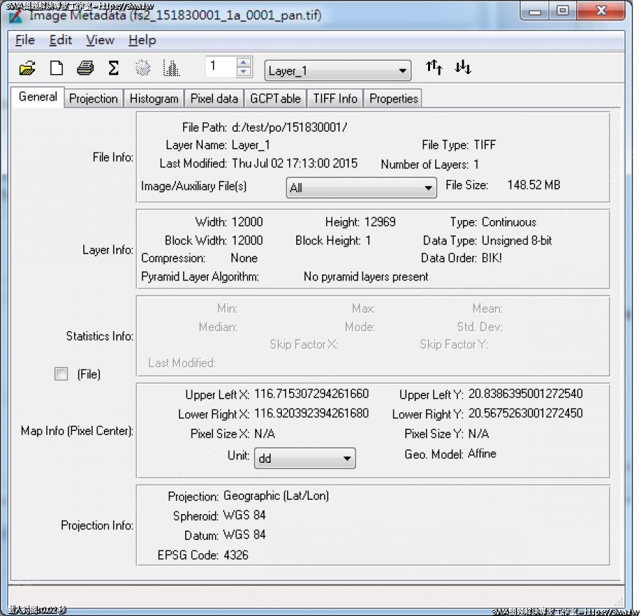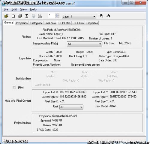 | 內容說明:GeoTiff Header | 瀏覽人數: 1660 |