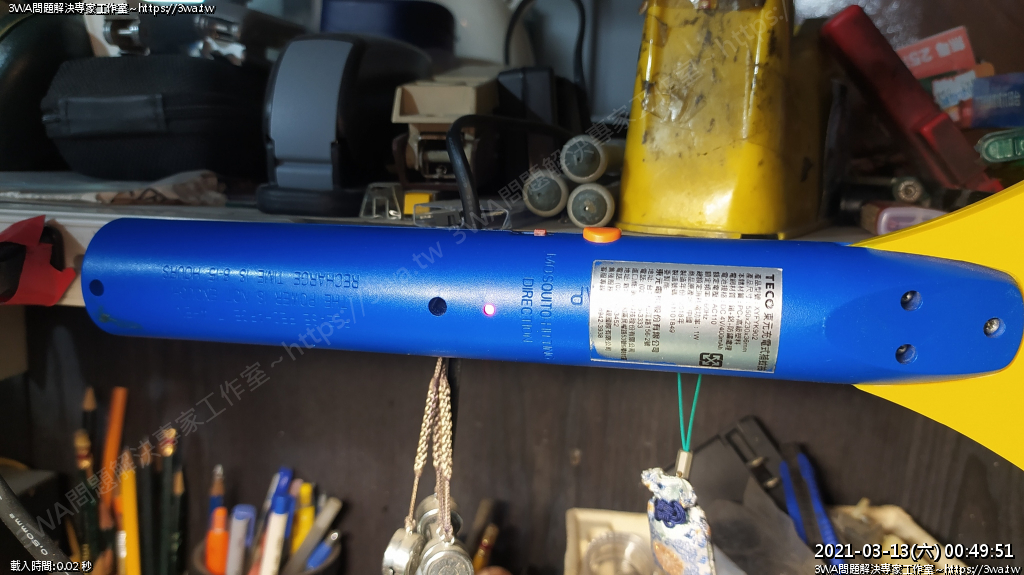| 內容說明:2021.03.13電蚊拍更換鋰電池 | 瀏覽人數: 1325 |