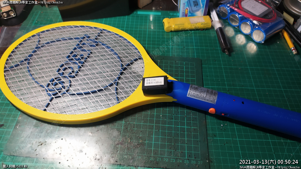 | 內容說明:2021.03.13電蚊拍更換鋰電池 | 瀏覽人數: 1048 |