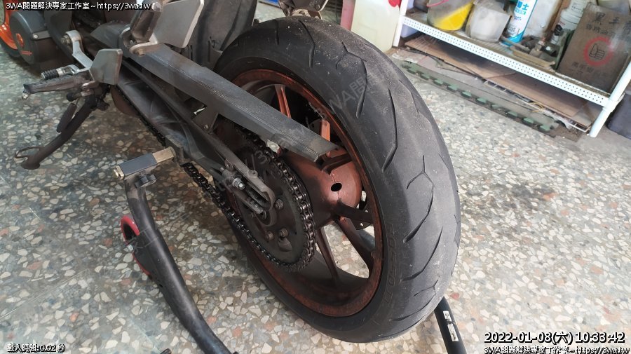 | 內容說明:2022.01.08KTM Duke390 換後輪 | 瀏覽人數: 882 |
