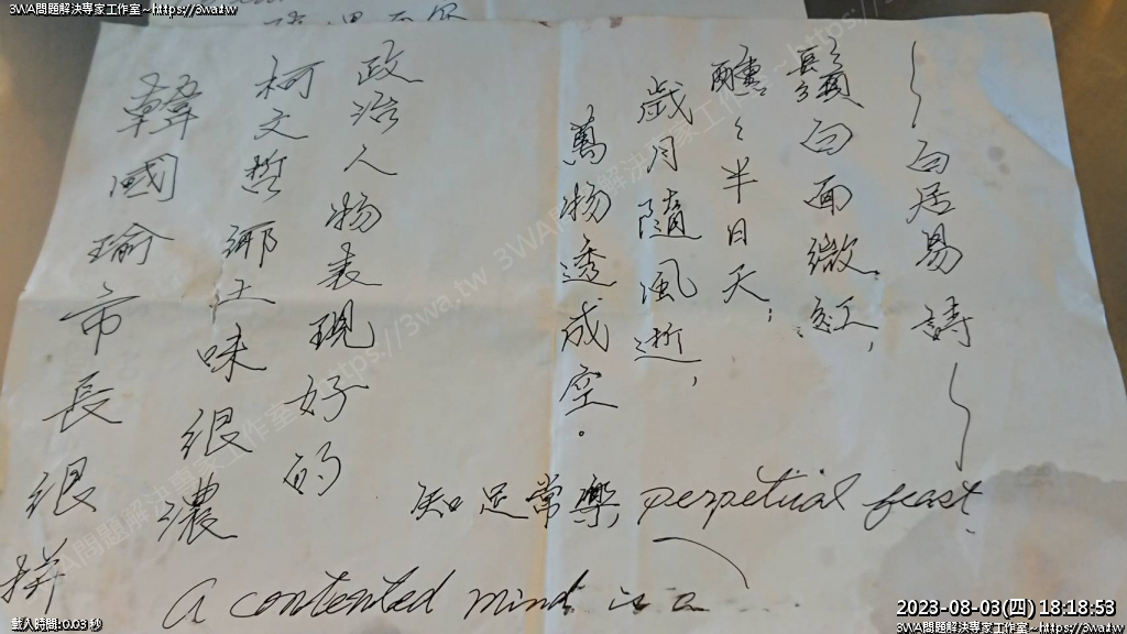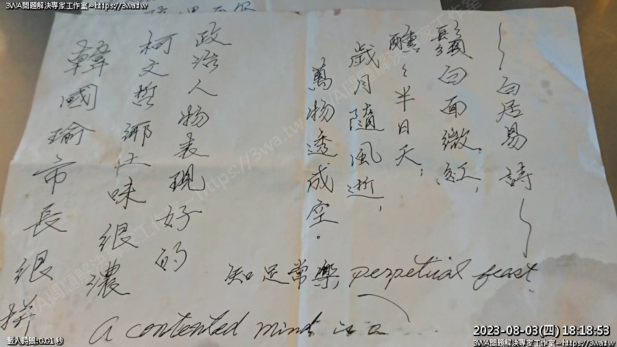 | 內容說明:爸爸的手稿 | 瀏覽人數: 810 |