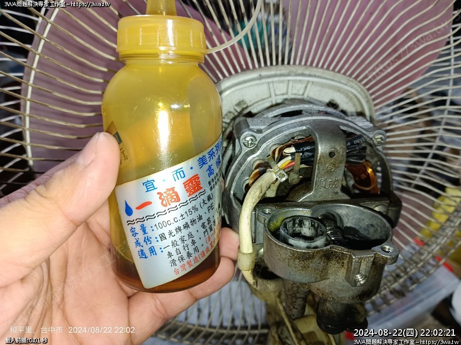 | 內容說明:2024.08.22電風扇上油 | 瀏覽人數: 688 |