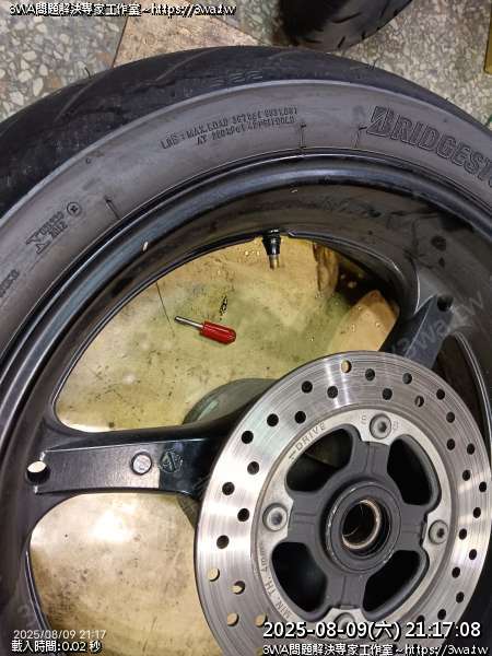 | 內容說明:2025.08.09CBR1000RR 後輪換氣嘴 | 瀏覽人數: 377 |