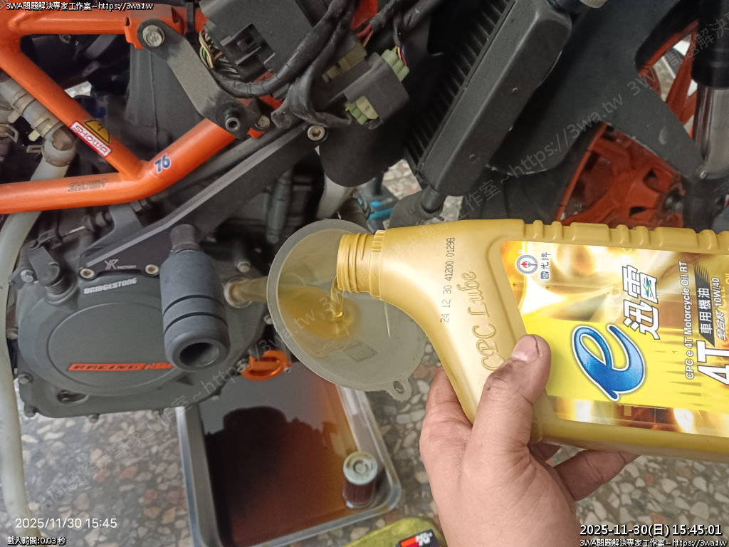 | 內容說明:2025.11.30KTMRC390換機油 | 瀏覽人數: 171 |